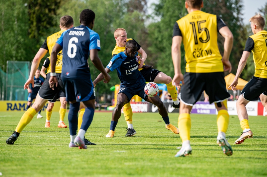 Paide kangutab ikka nii kõvasti, aga Vapruse blokk püsib kindel. Viimati proovis kümnekonna meetri pealt lüüa Nkwinga, aga mitu kollast jalga kindlalt ees.